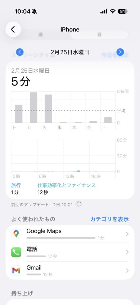 2月25日のスクリーンタイムは5分でした(私の場合)。詳しい管理方法はS04で扱っています。