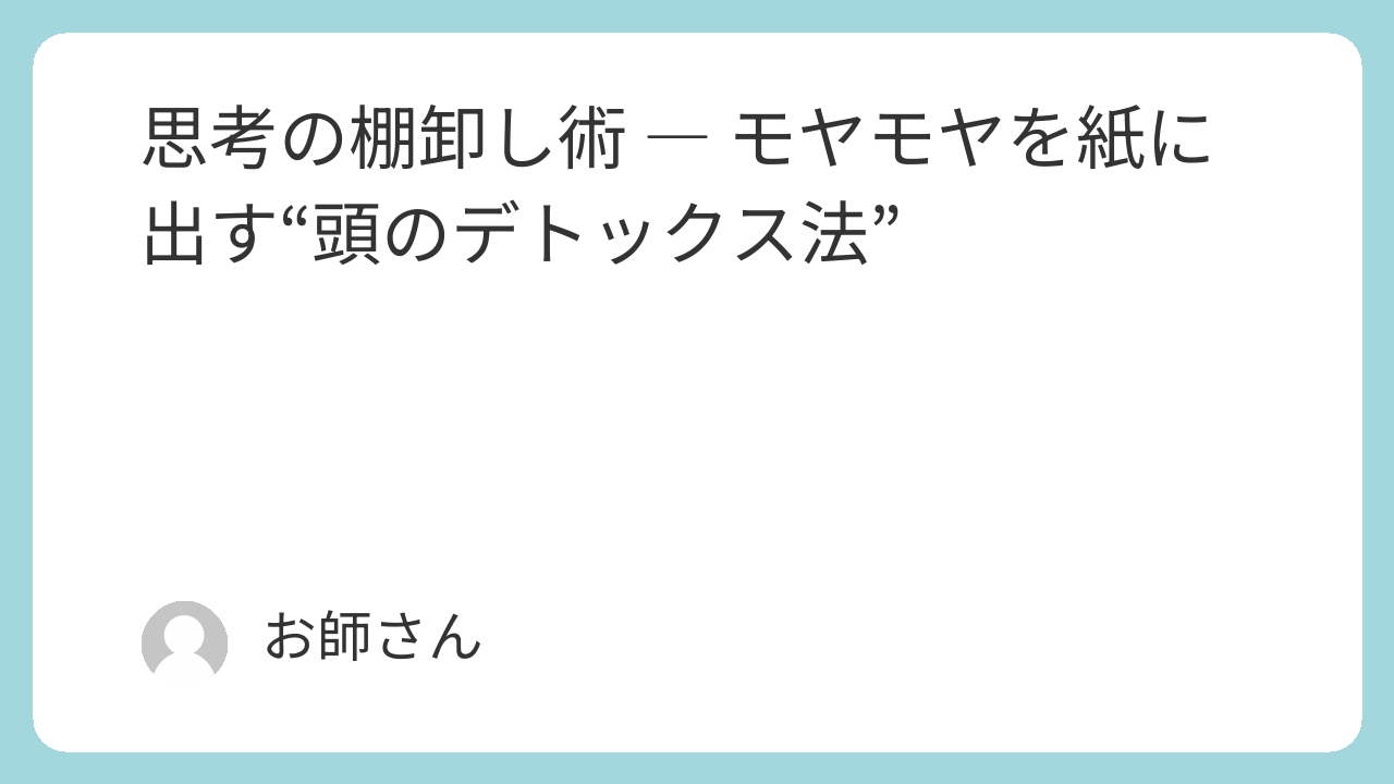 思考の棚卸し術 ― モヤモヤを紙に出す“頭のデトックス法”