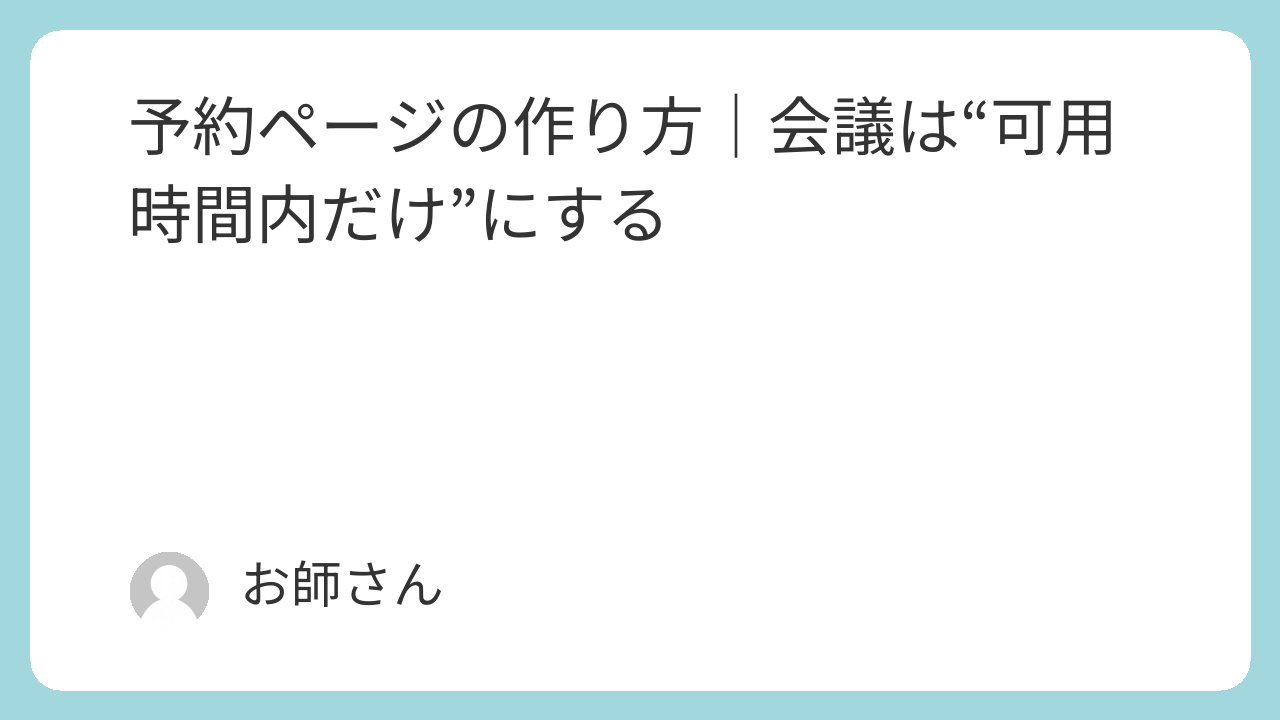 - 窓口を1つに:会議の起点は予約ページURLだけ。チャット直談判はURLへ誘導。