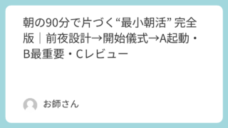時間管理・集中力 朝の90分で片づく“最小朝活” 完全版|前夜設計→開始儀式→A起動・B最重要・Cレビュー