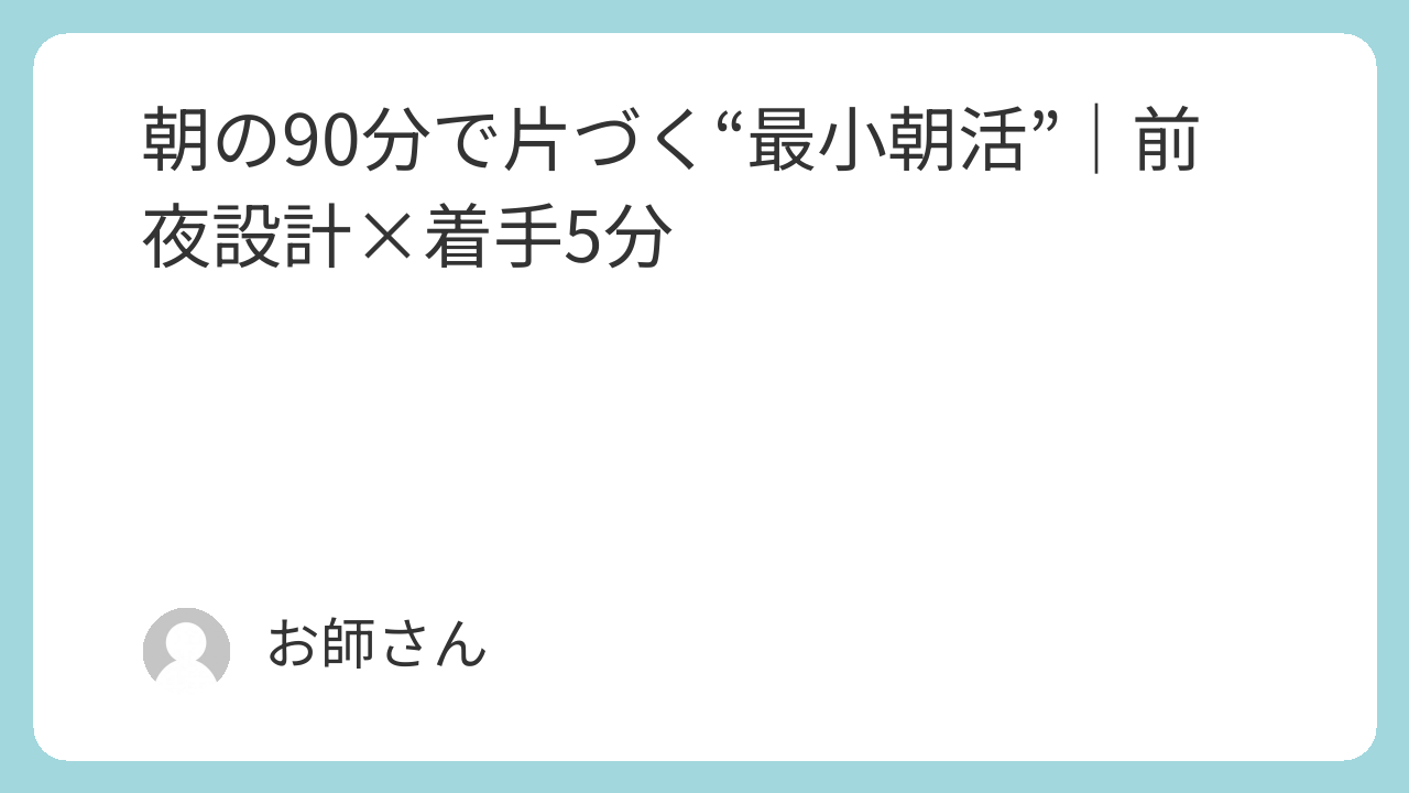 ポイント:朝は意思決定コストが高い時間。選択肢を減らし、トリガーを増やすのが勝ち筋です。