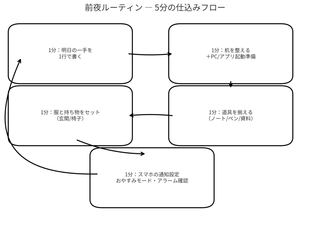 図1:前夜ルーティン ― 5分の仕込みフロー