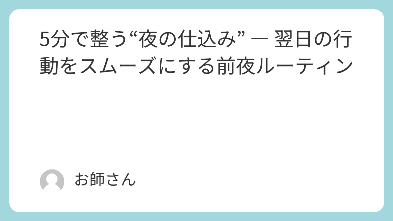 図1:前夜ルーティン ― 5分の仕込みフロー