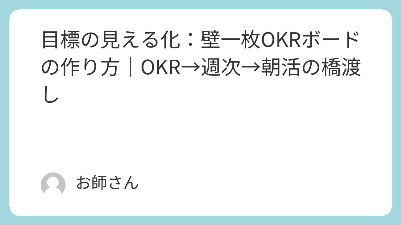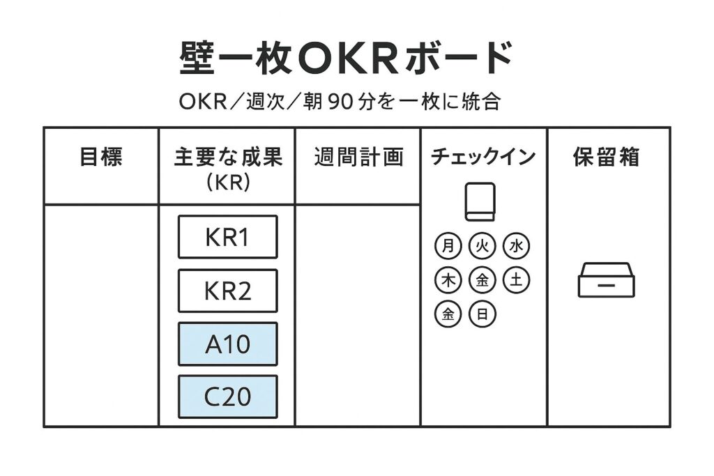 狙い:OKR→週次→朝活を一本の動線 で結ぶ“壁一枚ボード”の作り方を提示